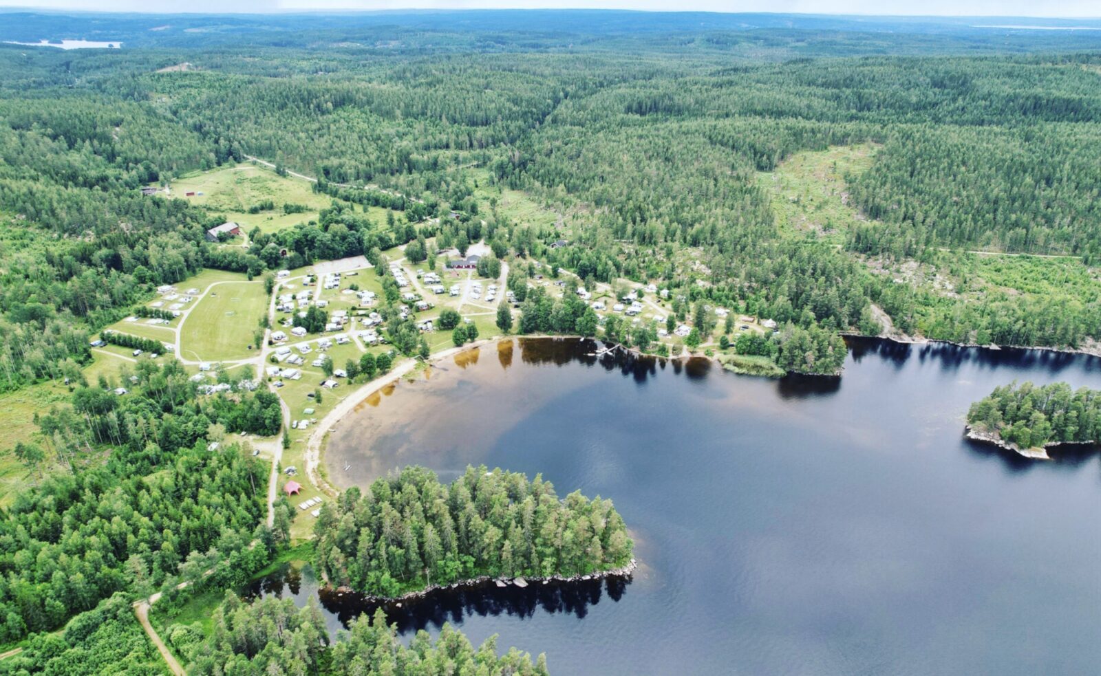 Camp Grinsby is een charmante en ruim opgezette camping in het prachtige Värmland in Zweden, waar natuur, rust en vrijheid centraal staan.
