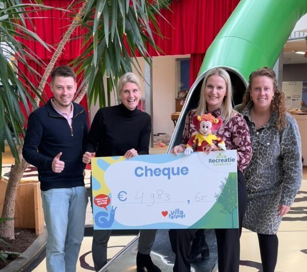 Vlak voor de kerstvakantie bracht het team van Recreatie Vakbeurs een bezoek aan Villa Pardoes in Kaatsheuvel om de cheque persoonlijk te overhandigen. Dankzij de genereuze steun werd een totaalbedrag van €5.003,65 opgehaald. Bezoekers ondersteunden het goede doel door hun toegangstickets te laten scannen bij de ingang van de beurs. Exposanten steunden Villa Pardoes door tijdens de beurs een stand voor Recreatie Vakbeurs 2026 te boeken. Tijdens de beurs waren vrijwilligers van Villa Pardoes aanwezig om bezoekers te informeren over het werk en de bijzondere impact van het vakantieverblijf.